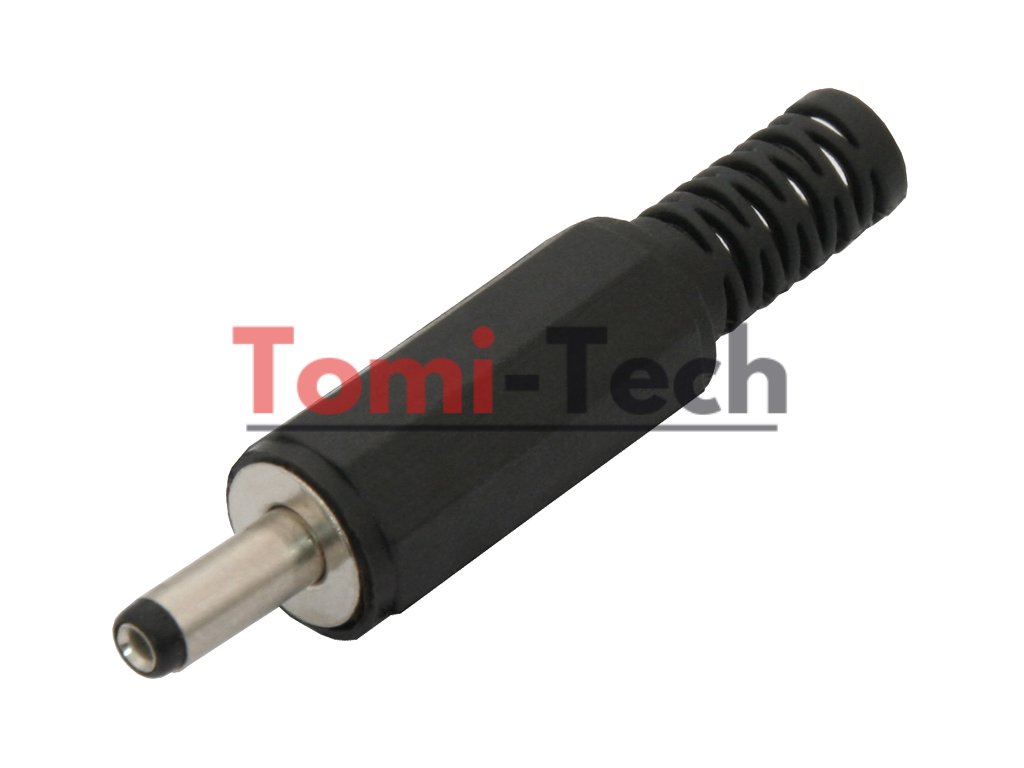 Priamy konektor DC 1.1/3.5 v čiernej farbe, určený okrem iného pre staršie modely telefónov Nokia.