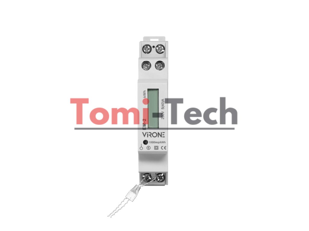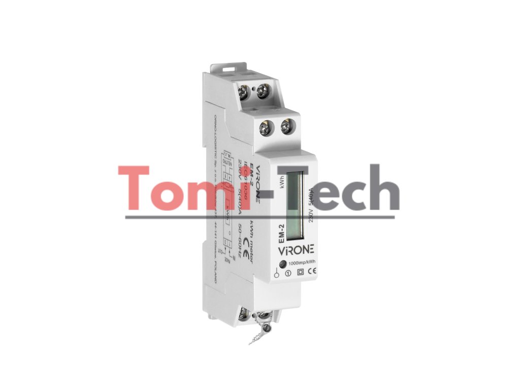 Toto zariadenie, ktoré meria činný výkon v metrických jednotkách (kWh), sa používa na priame meranie činného výkonu v jednofázovom systéme. Špeciálny elektronický obvod, ovplyvnený pretekajúcim prúdom a privedeným napätím, generuje impulzy úmerné spotrebovanej elektrickej energii. Spotreba energie v danej fáze je indikovaná blikajúcou LED diódou. Počet impulzov sa prepočítava na spotrebovanú energiu a jeho hodnota sa zobrazuje na LCD displeji (5+2). Napájanie: 230V~, 50Hz, základný prúd: 5A, max. prúd: 40A, min. prúd: 0,25A, frekvencia impulzov: 1000 impulzov/kWh, trieda presnosti B, jednomodulové puzdro, montáž na DIN lištu TH-35 mm, impulzný výstup: napájanie 12~27V, prúd ≤27mA, impulz = 90ms.Dodatočné parametre