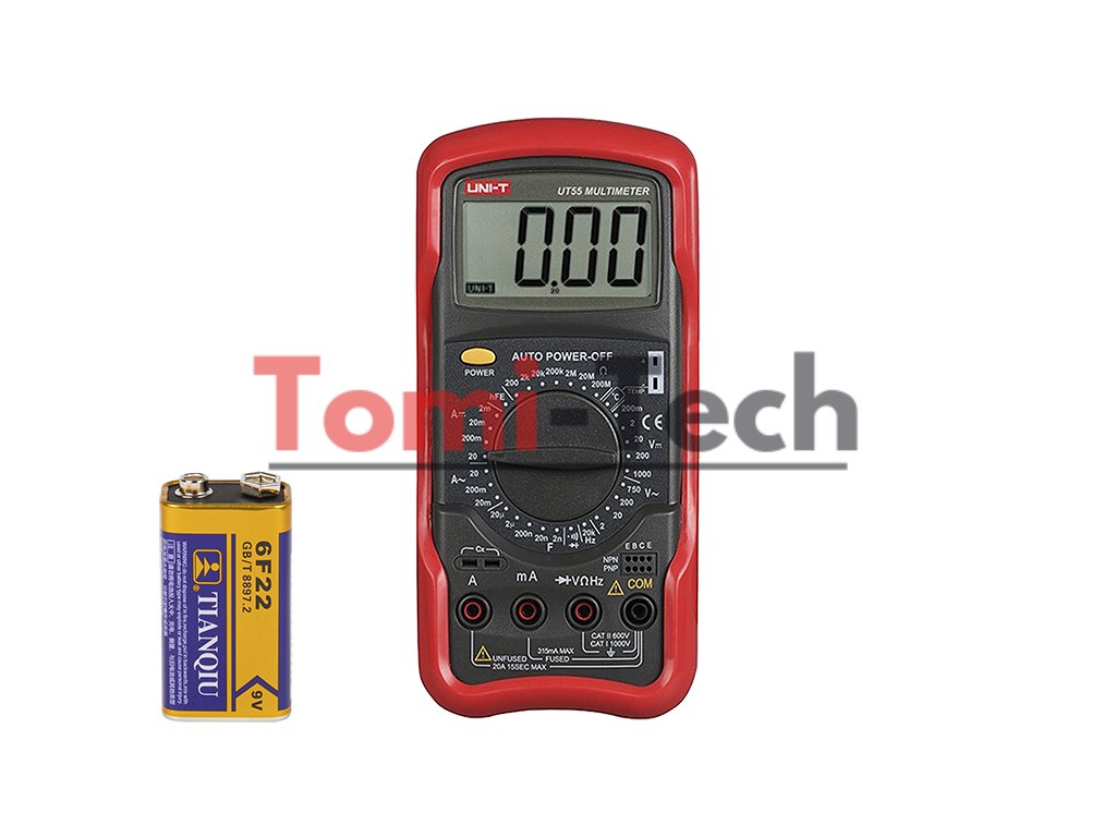 Univerzálnydigitálny merač, vďaka ktorému vieme merať napätie, prúd, odpor, frekvenciu, kapacitu, teplotu a hFE tranzistorov.