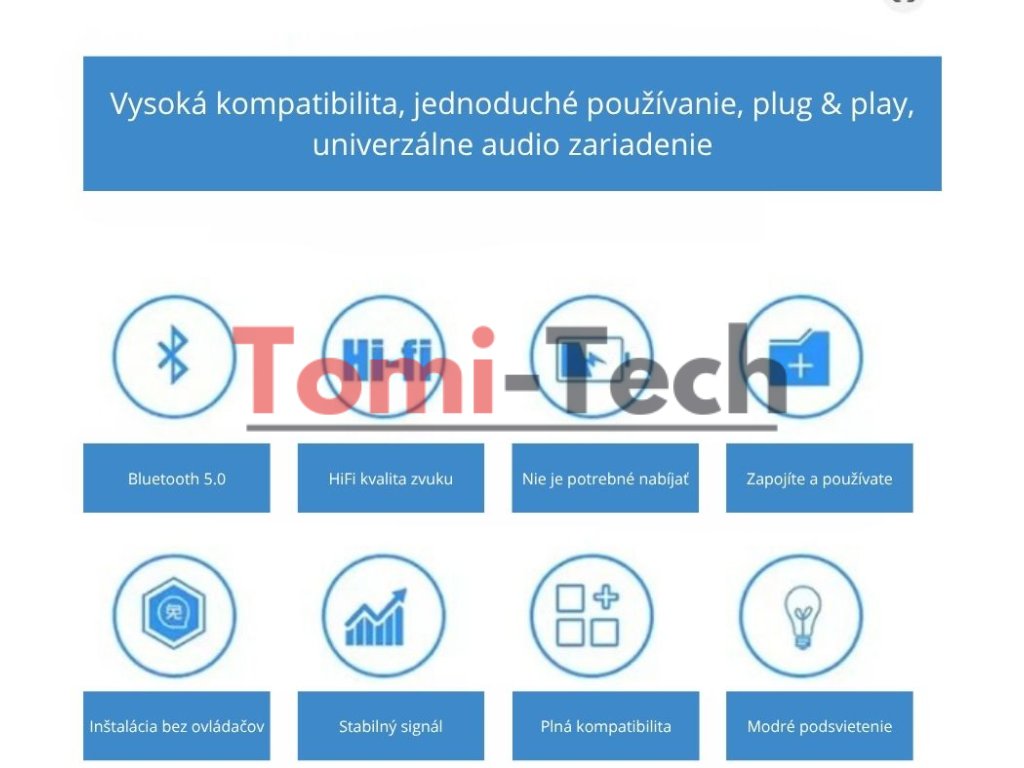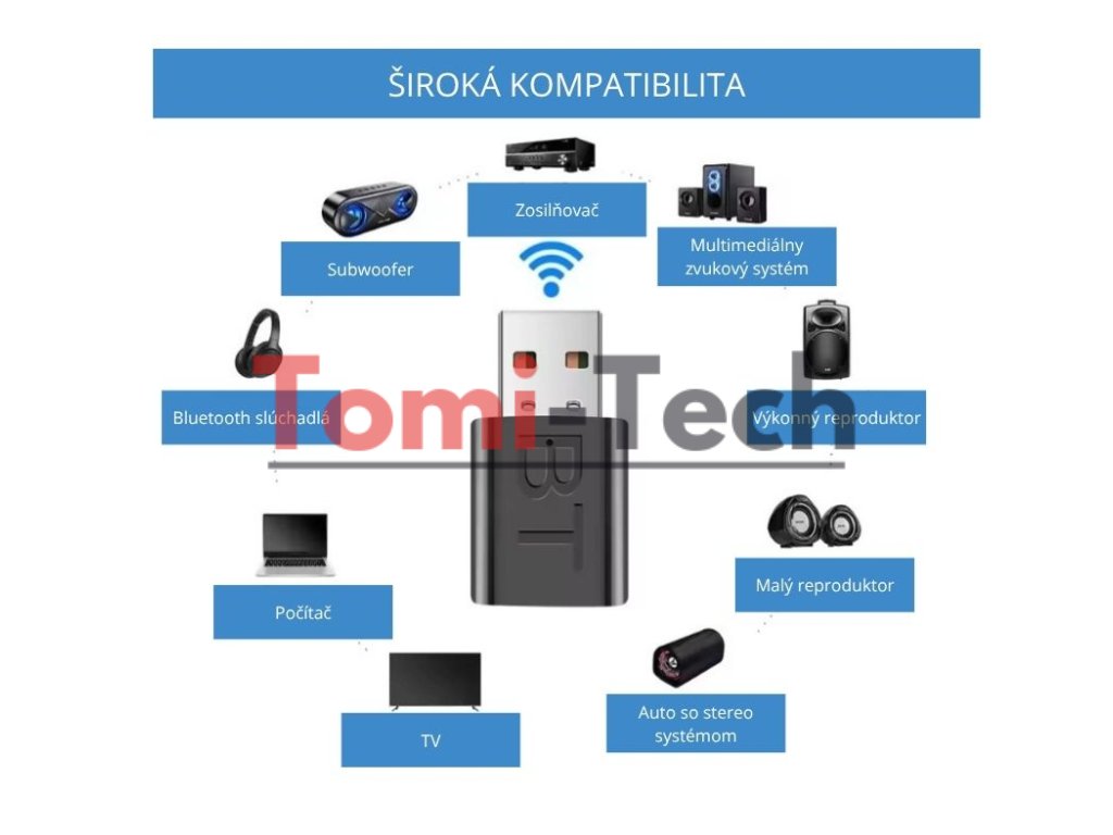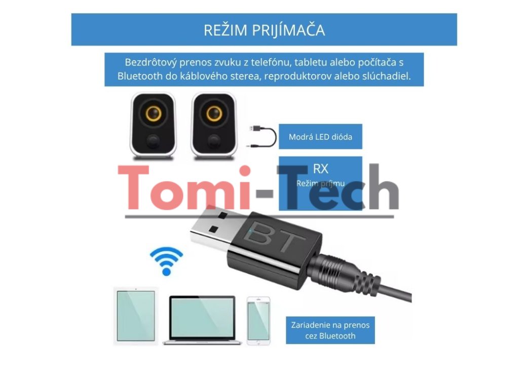 - Typ: USB Bluetooth adaptér (2 v 1: vysielač/prijímač)