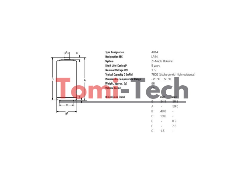Pokročilá priemyselná alkalická batéria LR14/C Varta (zosilnená vysokoenergetická batéria), určená pre priemyselné/profesionálne aplikácie. Odolnejší článok ako zinkovo-uhlíková batéria. Určená pre zariadenia, kde je životnosť a výkon nevyhnutný. Jedna z najvýkonnejších alkalických batérií na trhu s vynikajúcimi elektrickými parametrami.