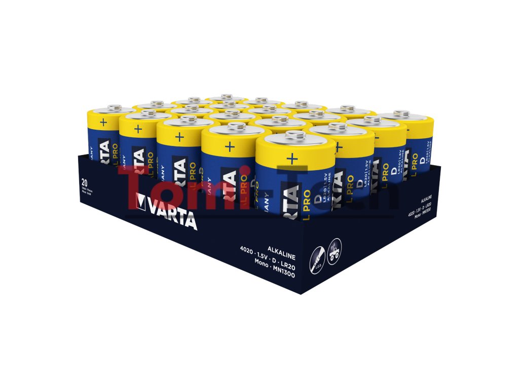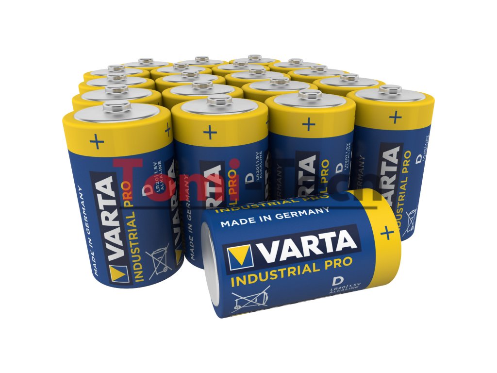 Pokročilé priemyselné alkalické batérie LR20 D VARTA (typ 4020) určené pre profesionálne/priemyselné použitie. Jedna z najvýkonnejších alkalických batérií na trhu. Veľmi dlhá minimálna doba spotreby.