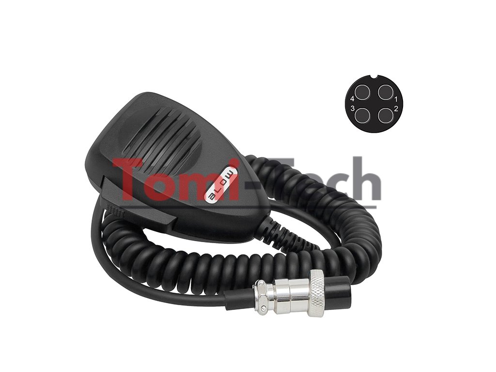 4-pinový mikrofónMikrofón funguje s väčšinou CB rádií, ktoré majú 4-pinový konektor