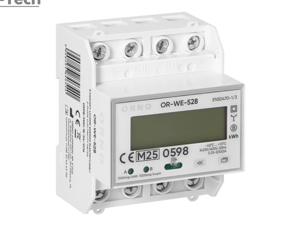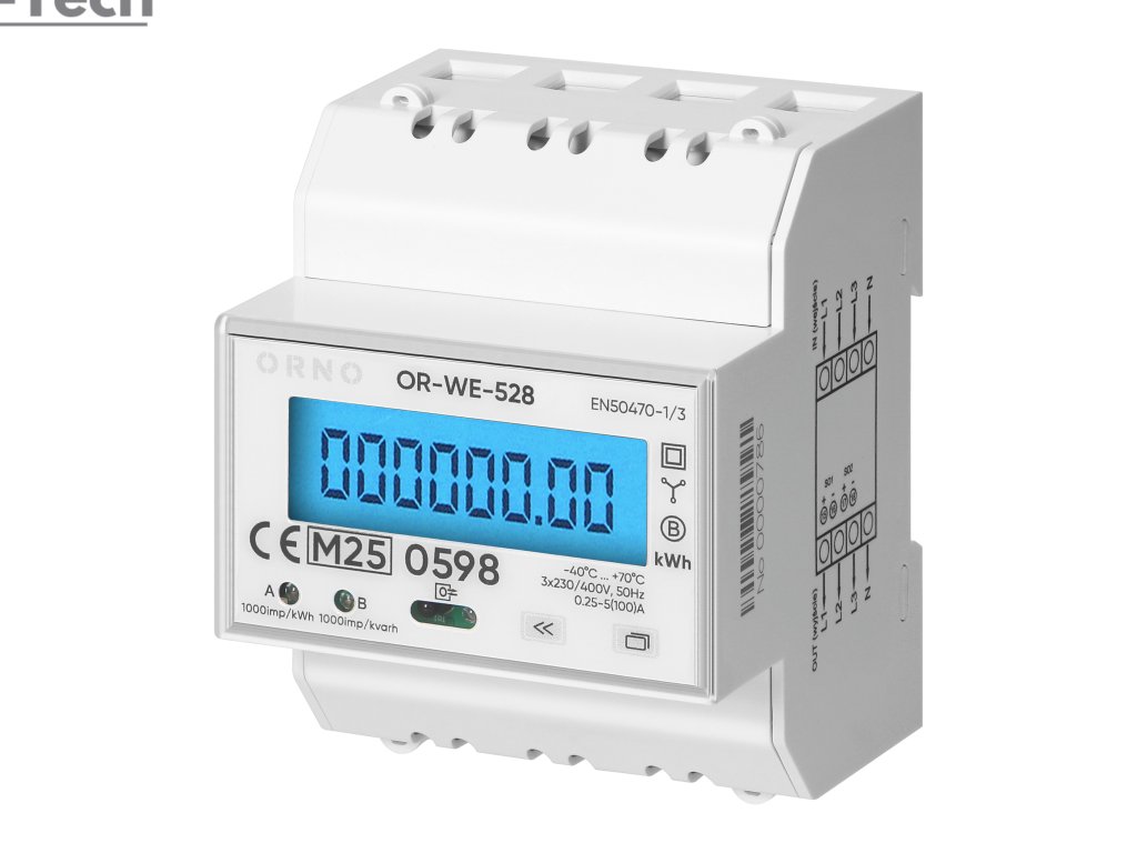 Trojfázový elektromer, 100 A, MID, 4 moduly, DIN TH-35 mmDodatočné parametre