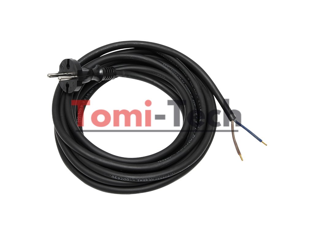 Pogumovaný pripojovací kábel zakončený z výroby zapečatenou, neodpojiteľnou zástrčkou. Druhý koniec kábla má koncovky pre jednoduché pripojenie k zariadeniu. Vďaka vysokej odolnosti gumového povlaku voči oderu, vlhkosti a drsným prevádzkovým podmienkam je tento kábel ideálny pre všetky stacionárne a prenosné zariadenia používané doma, v dielňach alebo na stavbách.