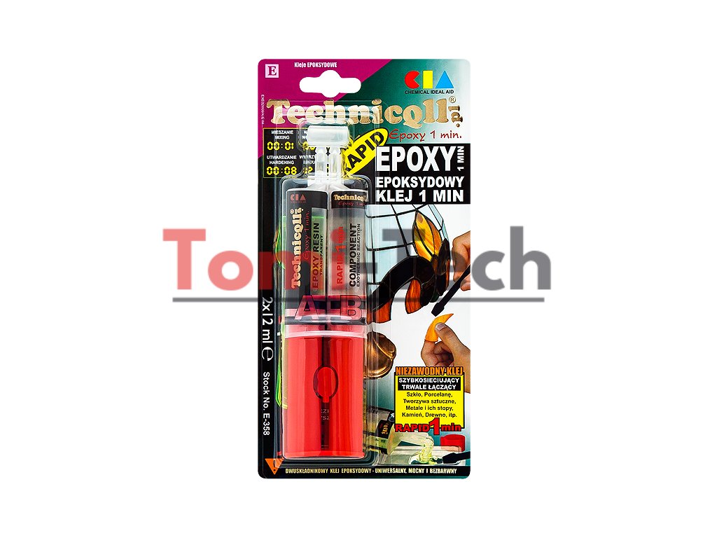 Bezfarebné epoxidové lepidlo s veľmi rýchlym, niekoľkominútovým časom zosieťovania. Spoľahlivé a účinné na trvalé lepenie: skla, porcelánu, keramiky, plastov (okrem PP, PE, PTFE), kameňa, betónu, mramoru, kovov a ich zliatin, gumy a dreva. Dokonale spája kombinácie materiálov.