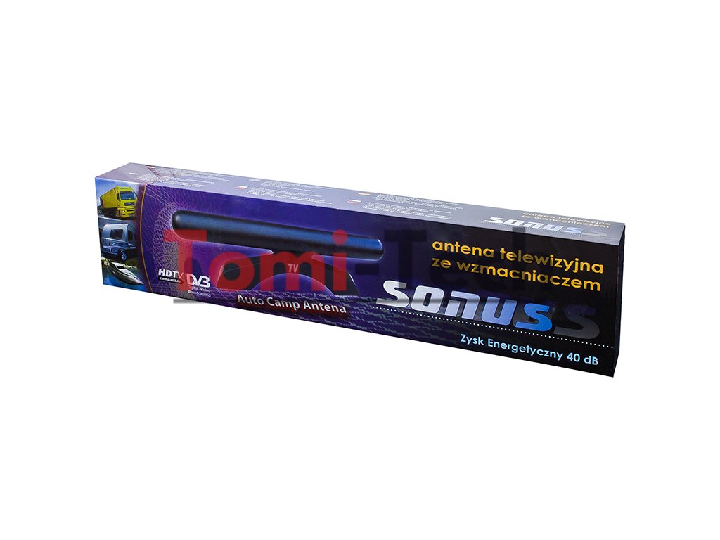 Anténa SONUS TV je určená na príjem signálov v treťom (kanály 6 až 12), štvrtom a piatom (kanály 21 až 69) pásme televízneho pásma. Je prispôsobená na použitie v interiéri (byt, kemping, auto...). Anténa je vybavená zosilňovačom prijímaných signálov s gombíkom pre plynulé nastavenie zisku. Použitie zosilňovača umožňuje príjem relatívne slabých televíznych signálov, takže ho môžu používať diváci žijúci v značnej vzdialenosti od vysielacej stanice. Na prenos signálu z antény do televízneho prijímača sa používa koaxiálny kábel so 75 ohmovou zástrčkou, ktorý sa pripája ku konektoru umožňujúcemu napájanie zo zásuvky zapaľovača v aute.