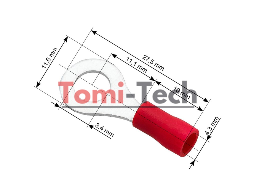 43-018# Izolovaný očkový konektor, skrutkový, 8,4 mm², kábel, 4,3 mm²