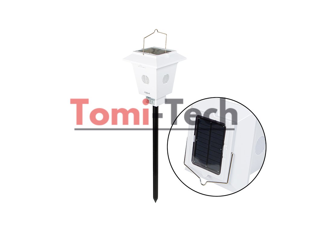 Zariadenie odpudzuje vtáky zvukom a svetlom – holuby, škorce, vrany a vrabce. Spĺňa štandard vodotesnosti IP44, má solárny panel a vstavanú batériu 3,7 V s kapacitou 2200 mAh. Je ideálny pre otvorené priestranstvá, sady, záhrady alebo polia. Produkt vydáva ultrazvukové signály s rôznymi frekvenciami, čím účinne odpudzuje škodcov. Má 3 prevádzkové režimy. Poskytuje uspokojivý prevádzkový dosah až 100 m.