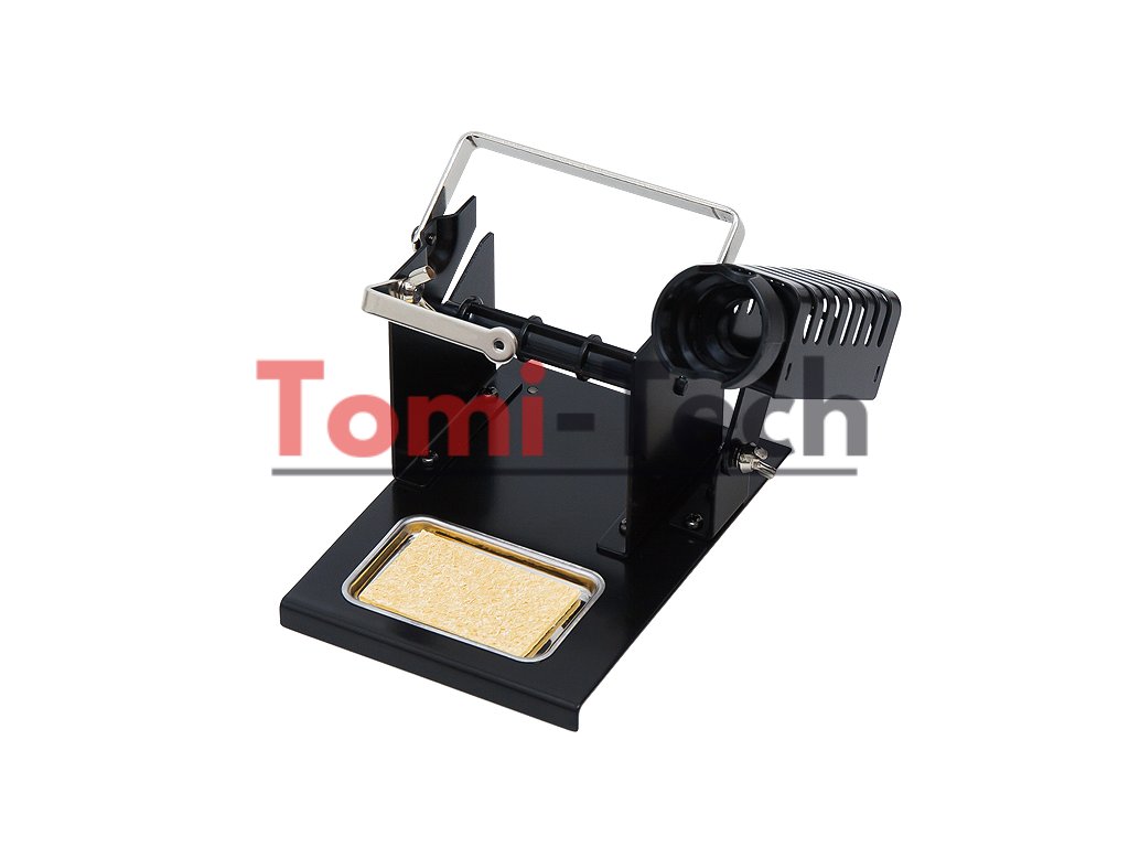 Stojan na spájkovačku s podávačom spájky a čističom hrotu. Stojan s práškovou farbou je vyrobený z kovu a výrazne uľahčuje a zefektívňuje spájkovanie. Držiak je vybavený rukoväťou, ktorá uľahčuje prepravu.