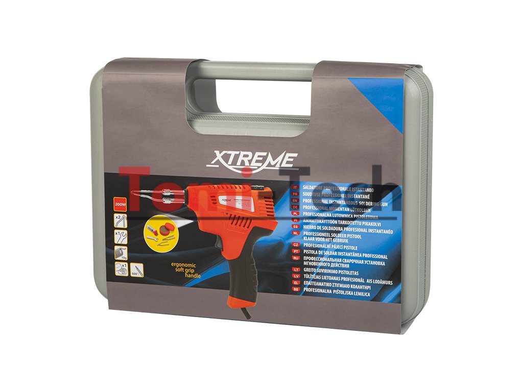 Univerzálna transformátorová spájkovačka od spoločnosti XTREME s maximálnym výkonom 200 W. Zariadenie vyniká rýchlym zahrievaním a regulácia teploty umožňuje dokonalé prispôsobenie sa materiálu, s ktorým sa pracuje. Spájkovačka je tiež vybavená LED diódou, ktorá ďalej zvyšuje komfort práce. A vďaka pohodlnej a ergonomickej rukoväti nespôsobuje únavu ani po dlhých hodinách práce.