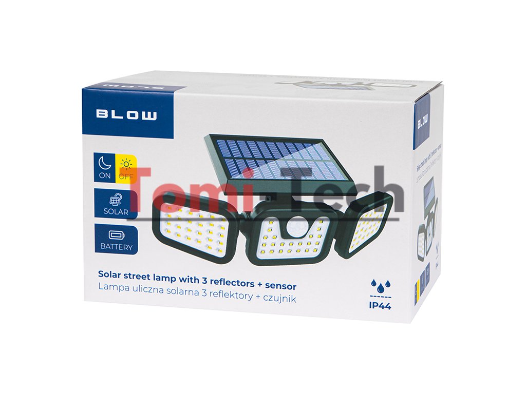 67-495# Solárna pouličná lampa 3 reflektory + senzor