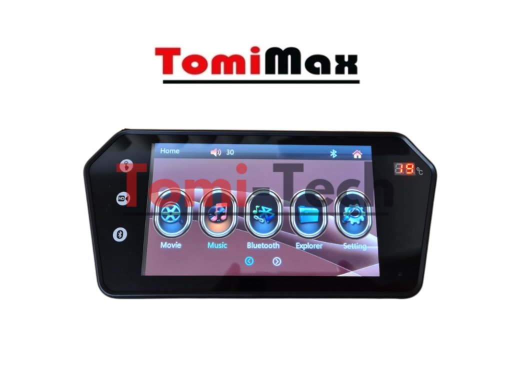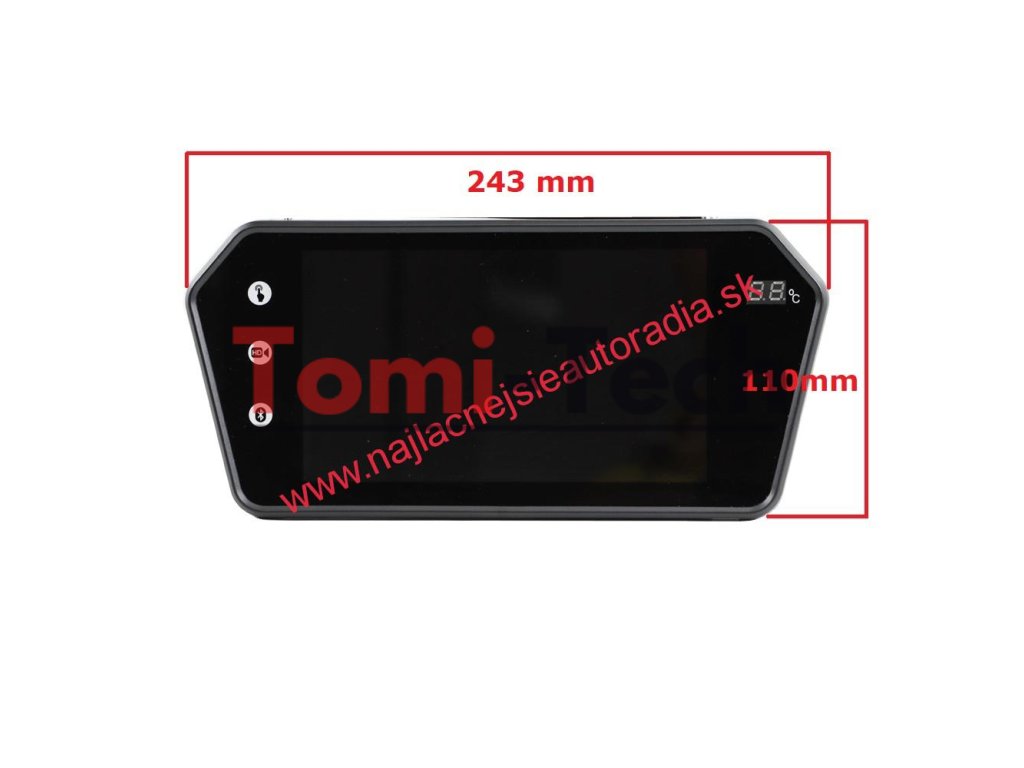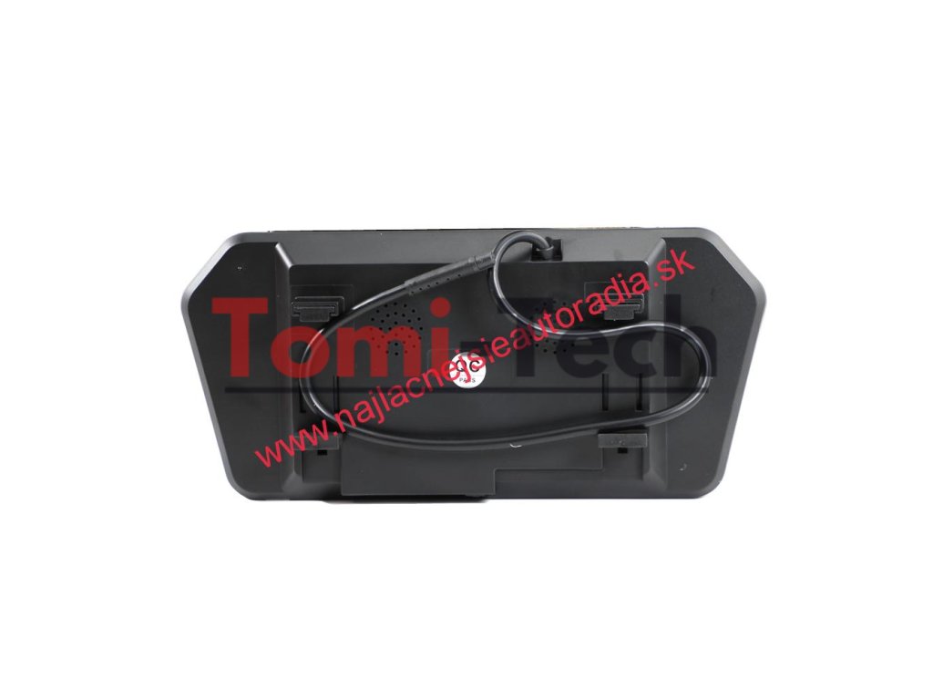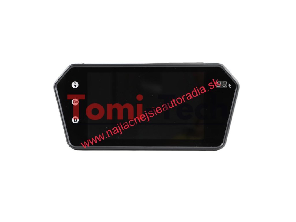 Disponuje USB vstupom, slotom pre micro SD pamäťové karty, vstavanou bluetooth handsfree funkciou a fm transmitterom. Nahradzuje pôvodné spätné zrkadlo. Jednoduchá inštalácia, len sa zacvakne na pôvodné spätné zrkadlo. Zrkadlo v sebe ukrýva 7“ LCD monitor ktorý po zaradení spiatočky pri cúvaní zobrazuje obraz z kamery inštalovanej napríklad v zadnom nárazníku. Zrkadlo má 2 Video vstupy takže okrem kamery k nemu pripojíte aj ďalší zdroj obrazu ako napr. (Hrácie konzoly, DVD, DVB-T, Video kamery, fotoaparáty, cúvacie kamery). Je ideálny pre taký typ aut ktoré nemajú žiaden spôsob ako nainštalovať iný monitor do interiéru. Jeho uchytenie je jednoduché pomocou mechanizmu ktorý ho bez akéhokoľvek vŕtania alebo lepenia prichytí k pôvodnému zrkadlu. Inštalácia možná na každý typ automobilu. Bluetooth na pohodlné telefonovanie. Zvuk si môžete vychutnávať prostredníctvom dvoch zabudovaných výkonných reproduktorov.