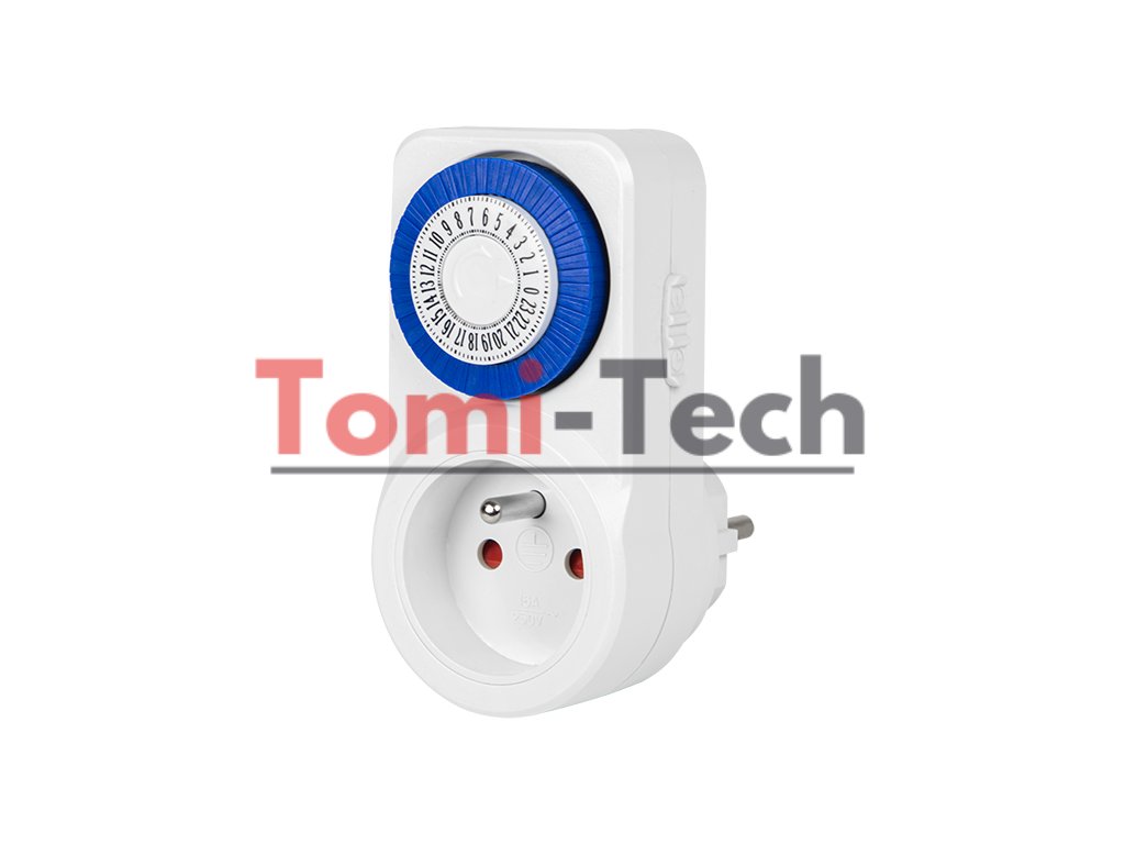Zásuvka s manuálnym programátorom umožňuje naplánovať zapnutie a vypnutie napájania. Jeden cyklus trvá 24 hodín a minimálny čas tuhnutia je 30 minút.