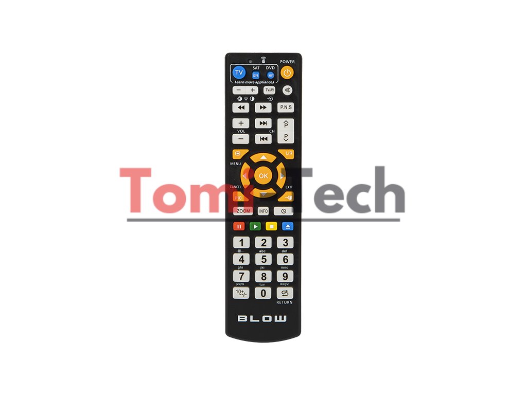 Moderný, univerzálny diaľkový ovládač s funkciou učenia od spoločnosti BLOW, určený na ovládanie TV, DVB, SAT, DVD zariadení väčšiny značiek dostupných na trhu. Produkt vyniká intuitívnym ovládaním a množstvom funkčných tlačidiel. Sada obsahuje podrobný návod na použitie.