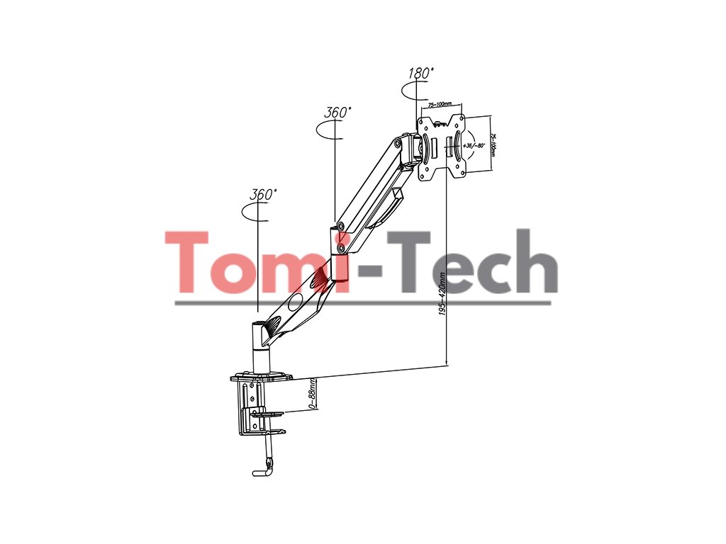 Tento univerzálny stolový držiak s pántom je navrhnutý tak, aby vám umožnil zavesiť tenký televízor alebo monitor na zvislú stenu. Maximálna nosnosť držiaka je približne 8 kg. Veľkosť namontovanej obrazovky je od 13" do 27". Držiak umožňuje jednoduché nastavenie sklonu panela v rozsahu -45/+45 stupňov.
