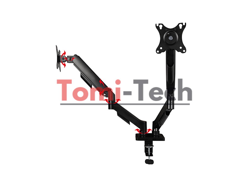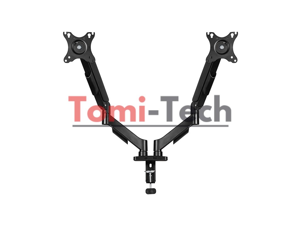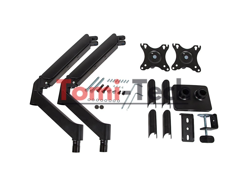 Držiak je navrhnutý špeciálne na montáž dvoch monitorov na stôl. Držiak je vyrobený z vysoko kvalitného kovu a čierneho plastu. Ideálne pre domáce aj kancelárske použitie.
