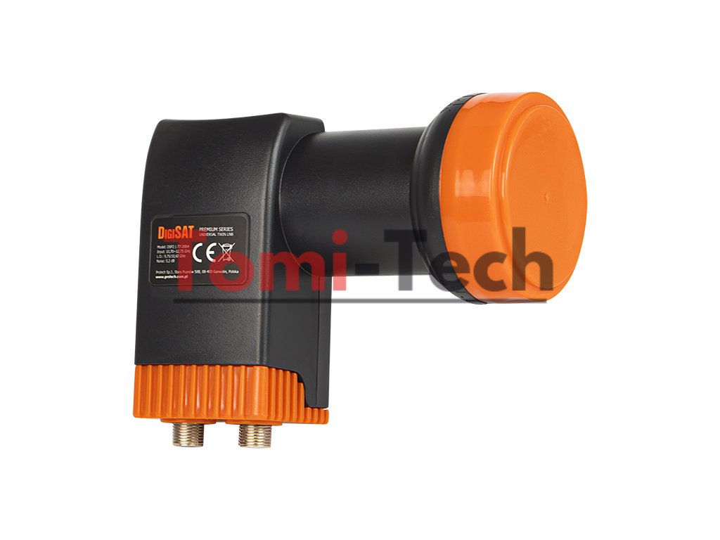 Satelitný LNB prevodník DigiSAT série PREMIUM je vysoko kvalitné zariadenie určené na príjem satelitných programov vysielaných v plnom rozsahu vo vertikálnej a horizontálnej polarizácii. Tento dvojitý LNB prevodník sa používa na príjem signálov z jedného satelitu prostredníctvom dvoch nezávislých tunerov alebo do tunerov s dvoma vstupmi.