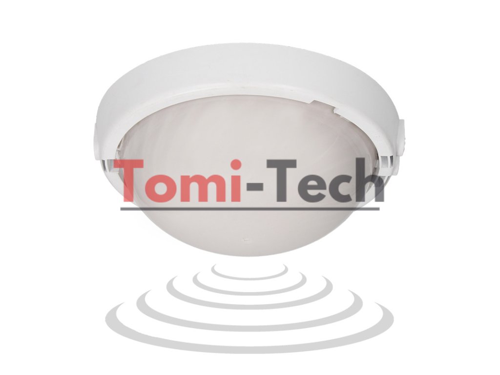 8080T/MAT-TRIO/MS/PL, svietidlo s mikrovlnným senzorom pohybu, 75W, E27, IP44, IK10, opálový polykarbonát, káblové priechodky