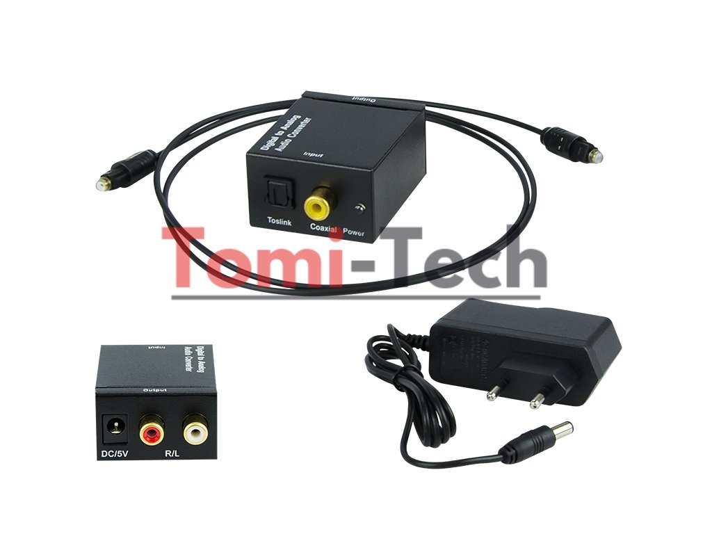 Audio prevodník určený na domáce alebo profesionálne prepínanie zvuku. Prevádza digitálne koaxiálne alebo Toslink signály na analógový L/R audio a umožňuje pripojenie k externému zariadeniu.