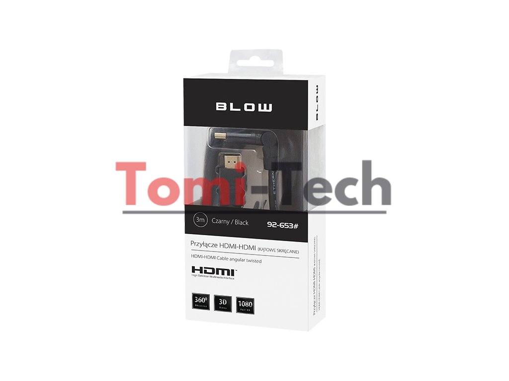 92-653# HDMI-HDMI konektor čierny, uhlový, 3m, skrutkovací