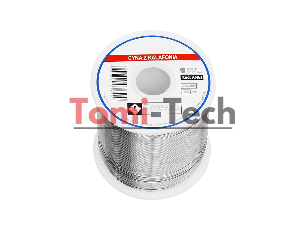 - Obsah železa: 0,02 % Obsah hliníka: 0,002 % Obsah kadmia: 0,002 % Obsah zinku: 0,002 % Obsah síry: 0,015 % Minimálna čistota použitých surovín: 99,9 % Teplota topenia: 183 ~ 215 °C Pracovná teplota: 330 ~ 380 °C Priemer: 0,7 mm Hmotnosť: 1000 g