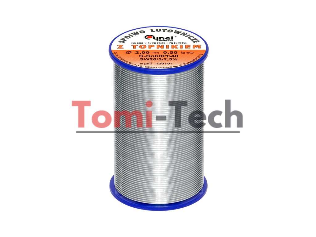 Spájka Pb60Sn40 s tavidlom SW26 bola vyrobená v prvej tavenine cínu a olova v súlade s normou EN ISO 9453:2014. Obsahuje tavidlo na báze halogenidu kolofónie SW26. Produkt je určený na profesionálne automatické a manuálne spájkovanie v elektronike a elektrotechnike, kde sa nevyžaduje súlad so smernicou RoHS2.