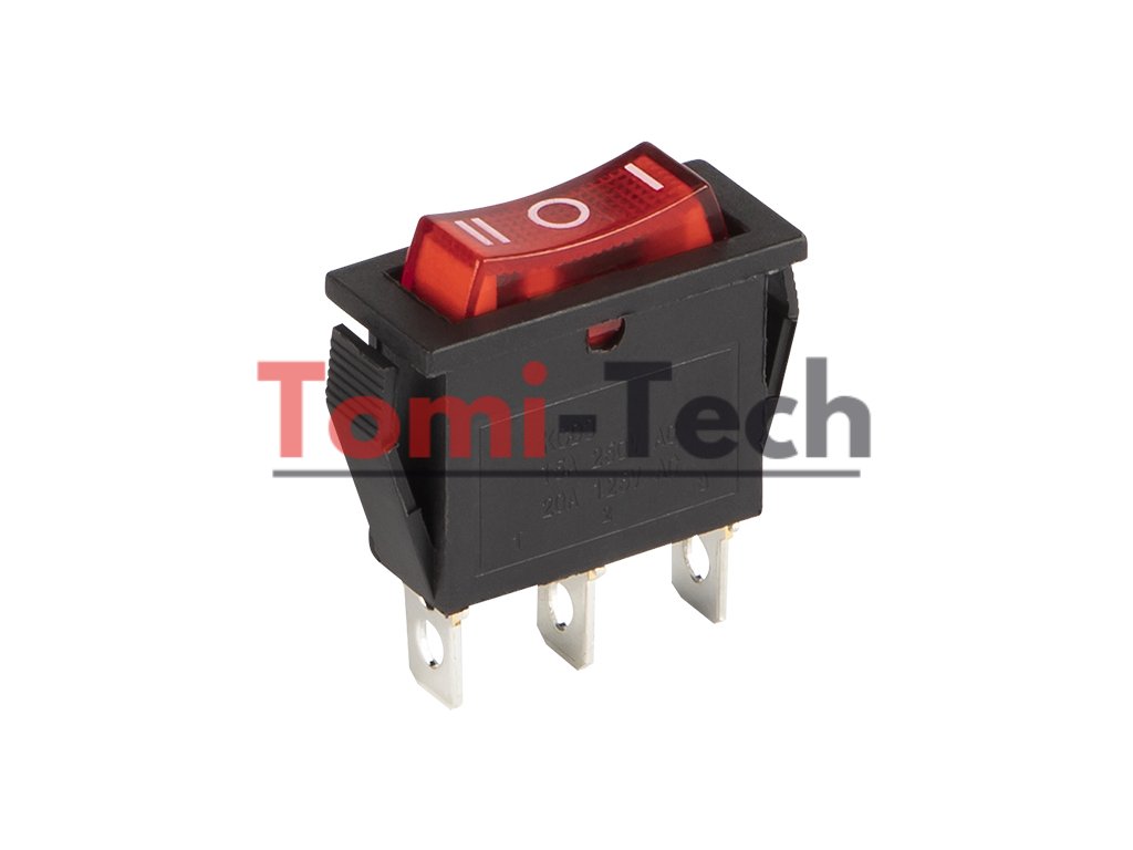 Úzky trojpinový kolískový prepínač v prevedení zapnuté/vypnuté/zapnuté IRS-103-3C.