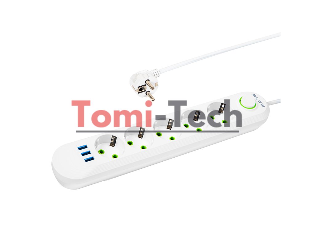 Biely predlžovací kábel BLOW s piatimi zásuvkami je určený na domáce použitie. Predlžovací kábel umožňuje pripojiť zariadenia, ktoré sú ďaleko od elektrickej zásuvky. Produkt má na jednej strane 5 uhlových zásuviek a vypínač a na druhej strane jednu uhlovú sieťovú zástrčku.
