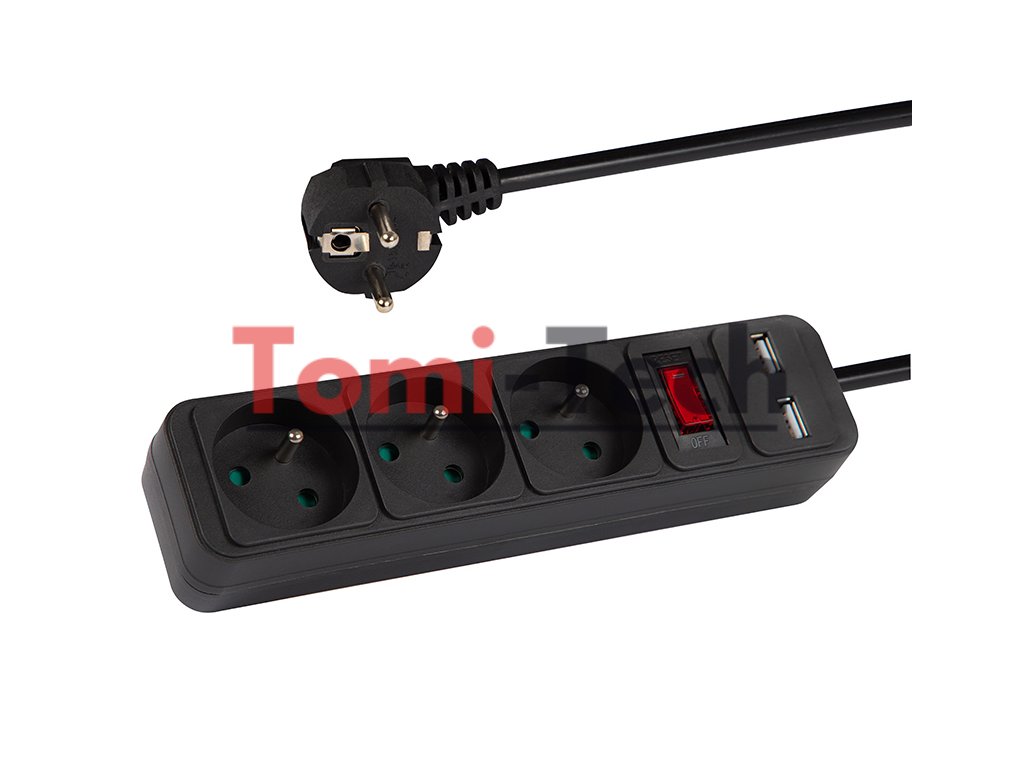 98-774# Predlžovací napájací kábel pr-370wsp/usb 3-zásuvky + USB s uzemnením + vypínač 1,5 m čierny 3x1,5 mm