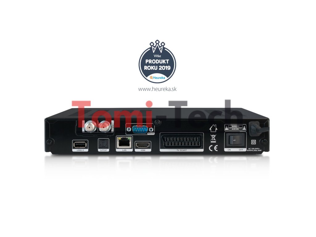 Kombinácia digitálneho satelitného prijímača a multimediálneho prehrávača s rozlíšením 1080p Full HD.