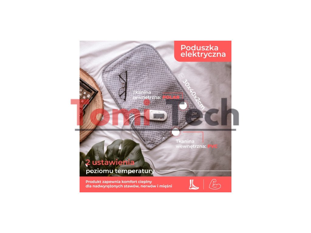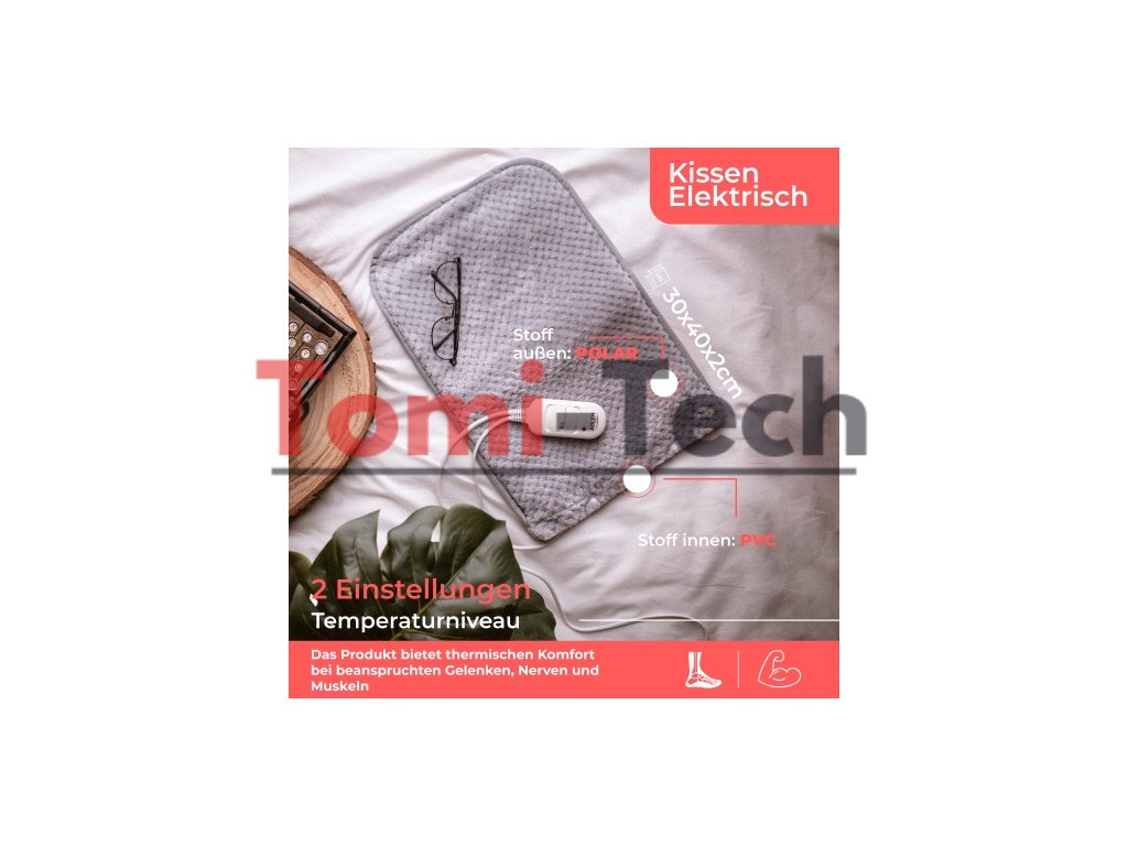 Vyhrievacia podložka s maximálnym výkonom 80 W. Dodávané diaľkové ovládanie umožňuje nastaviť teplotu a čas ohrevu v závislosti od potrieb používateľa. Podložka má odnímateľný a umývateľný poťah. Z bezpečnostných dôvodov má vyhrievacia podložka ochranu proti prehriatiu.