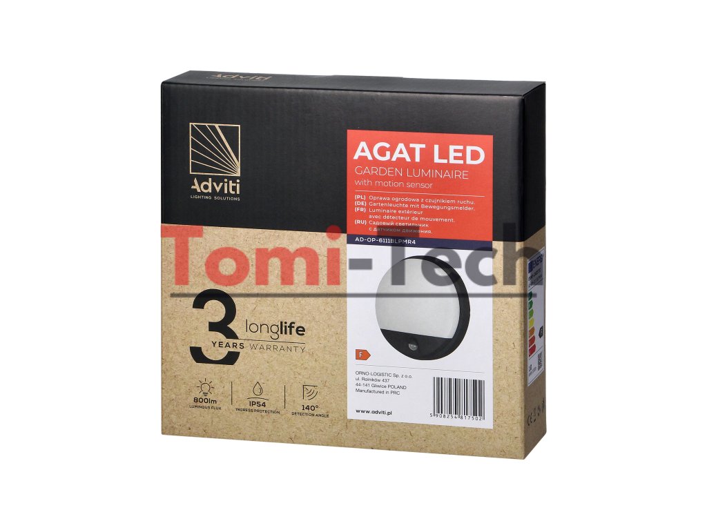 AGAT LED 10W, záhradné svietidlo s pohybovým senzorom, 140°, 800lm, IP54, 4000K, čierneDodatočné parametre