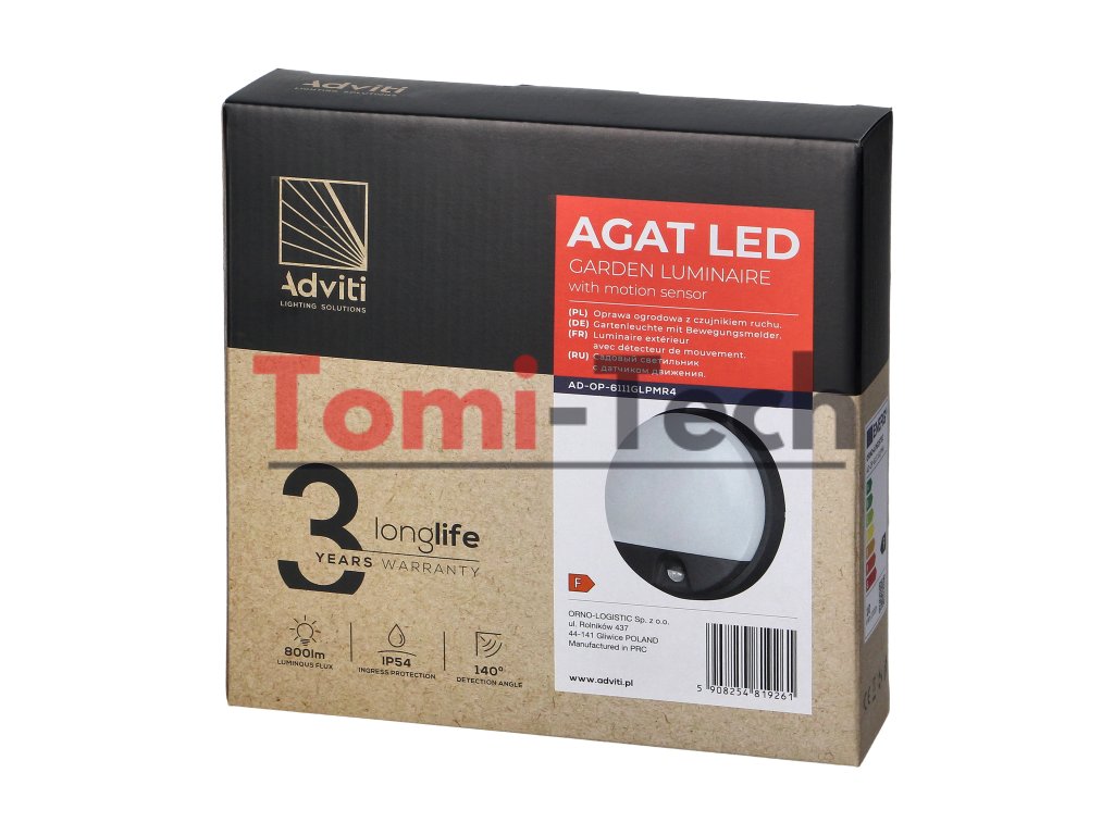 AGAT LED 10W, záhradná lampa s pohybovým senzorom 140°, 800lm, IP54, 4000K, siváDodatočné parametre