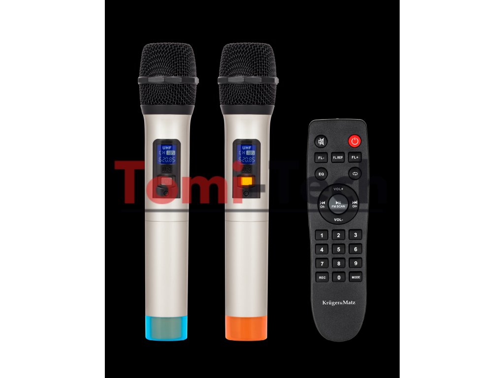 Počúvanie pesničiek iných ľudí sa stalo nudným? S reproduktorom Kruger&Matz KM 1712 môžete vy a vaši priatelia predviesť svoje schopnosti! Sada obsahuje dva mikrofóny, ktoré vám umožnia zorganizovať nezabudnuteľné karaoke session. Reproduktor má navyše gitarový vstup – prekvapte všetkých živým koncertom!