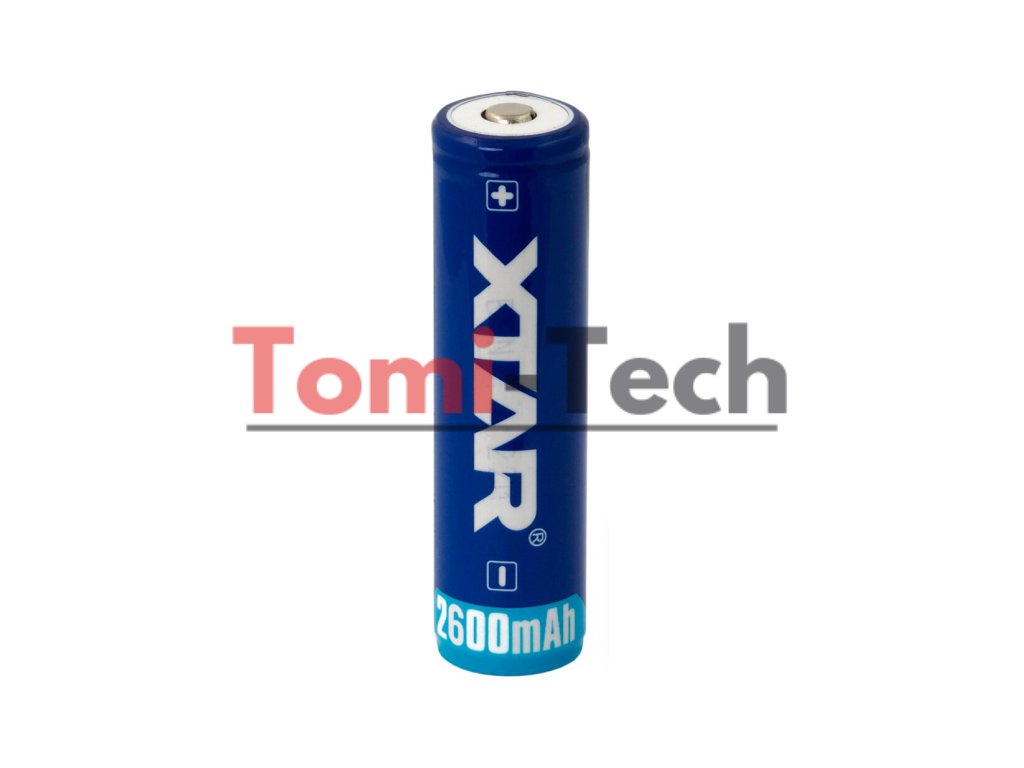 Lítium-iónová batéria XTAR 18650 s kapacitou 2600 mAh. Ochrana proti prebitiu, hlbokému vybitiu, preťaženiu a skratu. - Menovité napätie: 3,7 V - Kapacita: 2600 mAh - Rozmery: 18,4 mm x 69,2 mm - Ochrana proti: vybitiu, prebitiu, preťaženiu, skratu. Model / kód výrobcu: Xtar 18650. Menovité napätie [V]: 3,70. Kapacita batérie [mAh]: 2600. Maximálny odporúčaný nabíjací prúd [A]: 2 000. Maximálny vybíjací prúd (trvalý) [A]: 5,00. Prah aktivácie prúdovej ochrany [A]: 6,20. Priemer [mm]: 18,4. Výška [mm]: 69,2.Dodatočné parametre