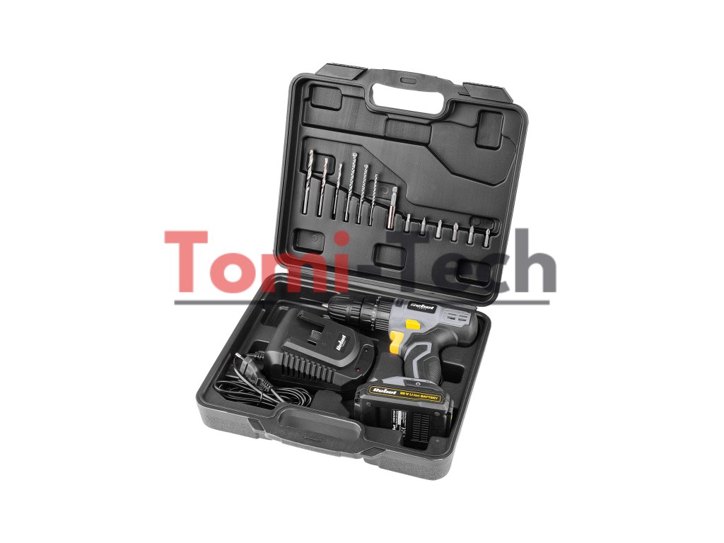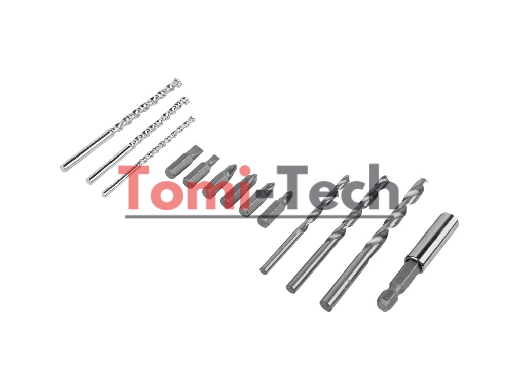 Náradie má navyše dva rýchlostné režimy, ktoré zaručujú presnosť pri práci. Vŕtačka/skrutkovač sa dodáva s 13 vrtákmi, takže si môžete ľahko vybrať správnu veľkosť a typ pre spracovávaný materiál. Ďalšou výhodou elektrického náradia je rýchloupínacie skľučovadlo, ktoré umožňuje rýchlu a pohodlnú výmenu vrtákov. bez použitia ďalších kláves.