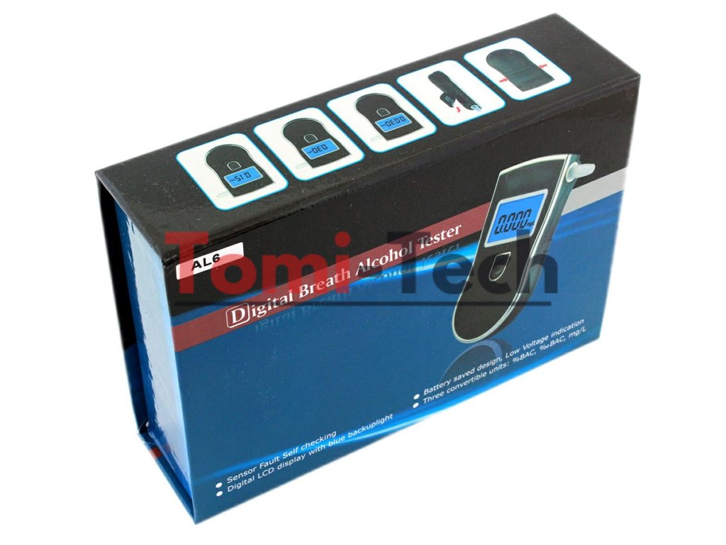 Praktický digitálny dychový analyzátor s náustkom – užitočné zariadenie pre každého vodiča. Dychový analyzátor AL6 je komplexná sada vybavená piatimi ďalšími vymeniteľnými náustkami a prenosným puzdrom. Zariadenie sa veľmi ľahko používa; na jeho aktiváciu stačí podržať tlačidlo na prednej strane a postupovať podľa pokynov na prehľadnom podsvietenom LCD displeji. Špeciálna funkcia šetrenia batérie zaisťuje dlhé a pohodlné používanie dychového analyzátora. Už nemusíte navštíviť najbližšiu stanicu MPK ani dispečing. Skontrolujte si, či ste pripravení šoférovať a rozptýľte všetky pochybnosti ešte predtým, ako si sadnete za volant, už za pár sekúnd!