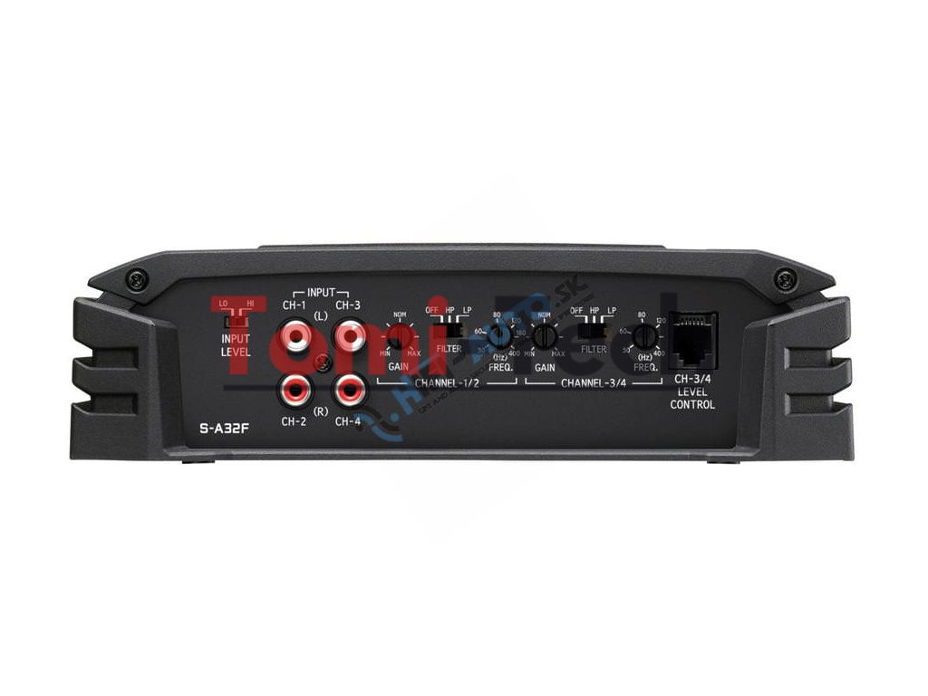 Frekvenčná charakteristika (+0, -3dB: 1 W do 4 ohmov) pre CH-1/2/3/4: 10 Hz - 30 kHz