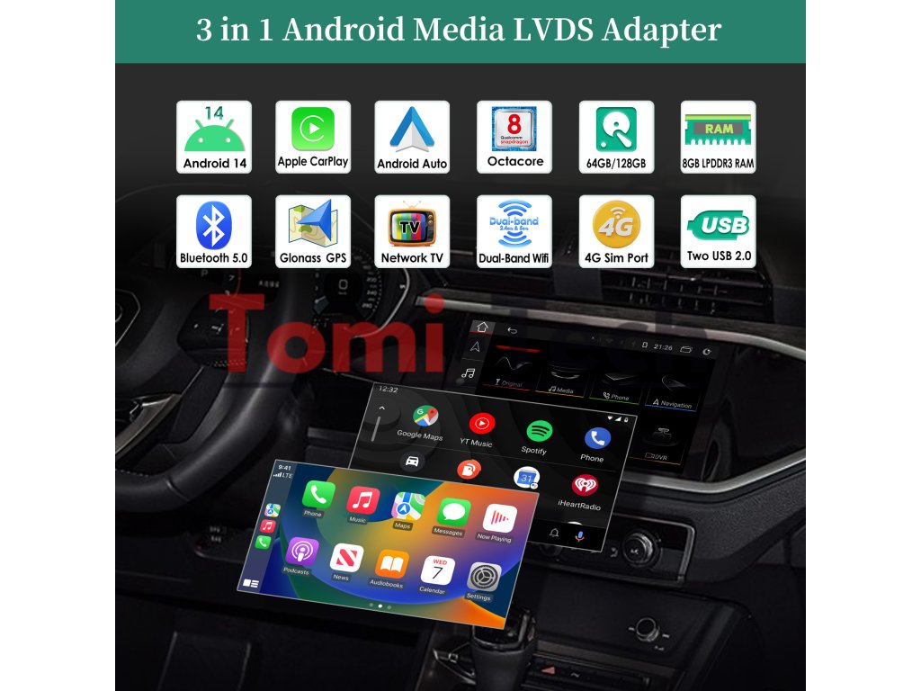 (1) Či už ide o sledovanie filmov/TV/video/internet alebo streamovanie, môže splniť vaše hudobné želania a koexistovať s multimediálnym systémom v aute. a máte možnosť streamovať svoju obľúbenú hudbu bez použitia objemu dát smartfónu a bez platenia navyše