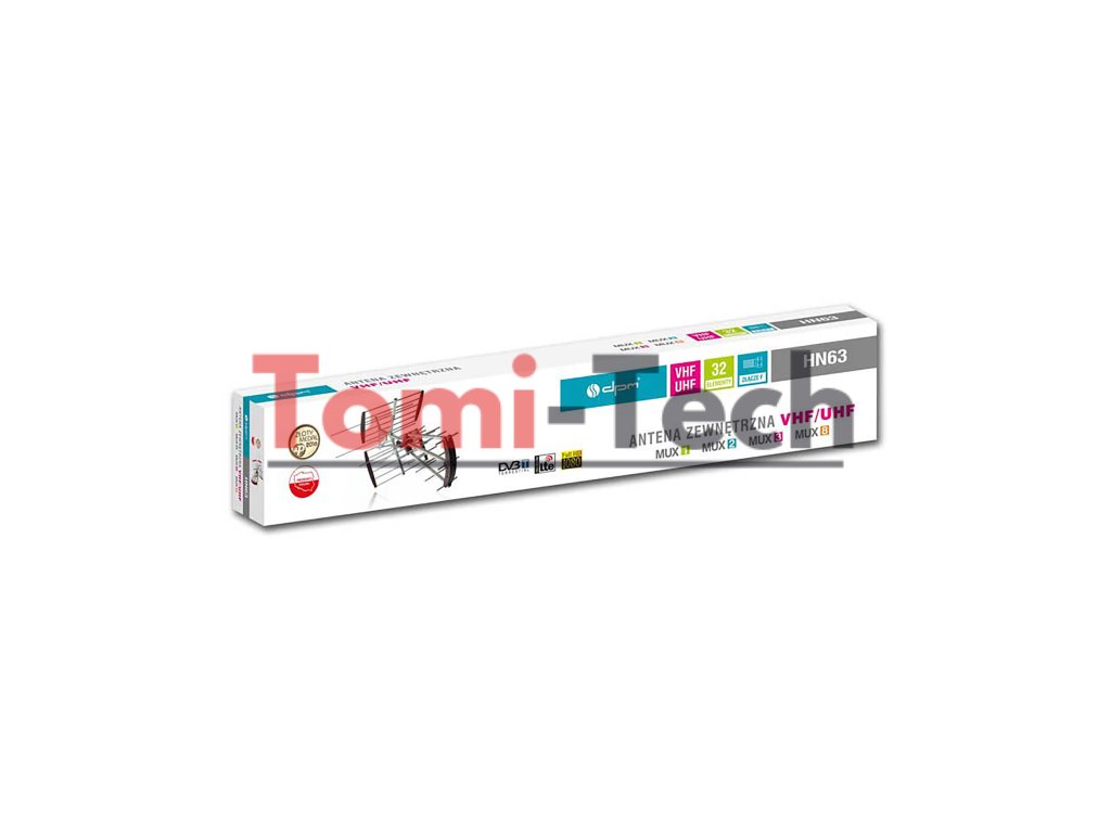 ----------Technické špecifikácie-----------Prijímacie pásmo: VHF/UHFLTE Filter: ÁnoOblasť použitia: VonkajšieMateriál: HliníkPolarizácia: Vertikálna a horizontálnaFarba: Sivá----------Vlastnosti----------Táto vonkajšia TV anténa prijíma digitálnu televíziu DVB-T v pásmach VHF (frekvencie 174-230 MHz) a UHF (frekvencie 470-790 MHz). Je vybavená LTE filtrom, ktorý blokuje rušenie z pásma LTE a má balun. Je vyrobená z hliníka a skladá sa z 32 prvkov. Ľahká a odolná konštrukcia je odolná voči nepriaznivým poveternostným podmienkam. Anténa nie je napájaná, stačí ju pripojiť k TV prijímaču. Prijíma kanály 5-12 (v pásme VHF) a 21-60 (v pásme UHF). Anténa je vertikálne aj horizontálne polarizovaná. S touto anténou môžete sledovať svoje obľúbené programy v kvalite Full HD 1080p. Inštalácia antény: Anténa HN63 sa skladá z 32 prvkov. Inštalácia je rýchla a jednoduchá; možno ju zostaviť bez náradia. Zložená anténa sa montuje na vonkajší anténny stožiar. Súčasťou súpravy je montážny držiak na stožiar.Dodatočné parametre