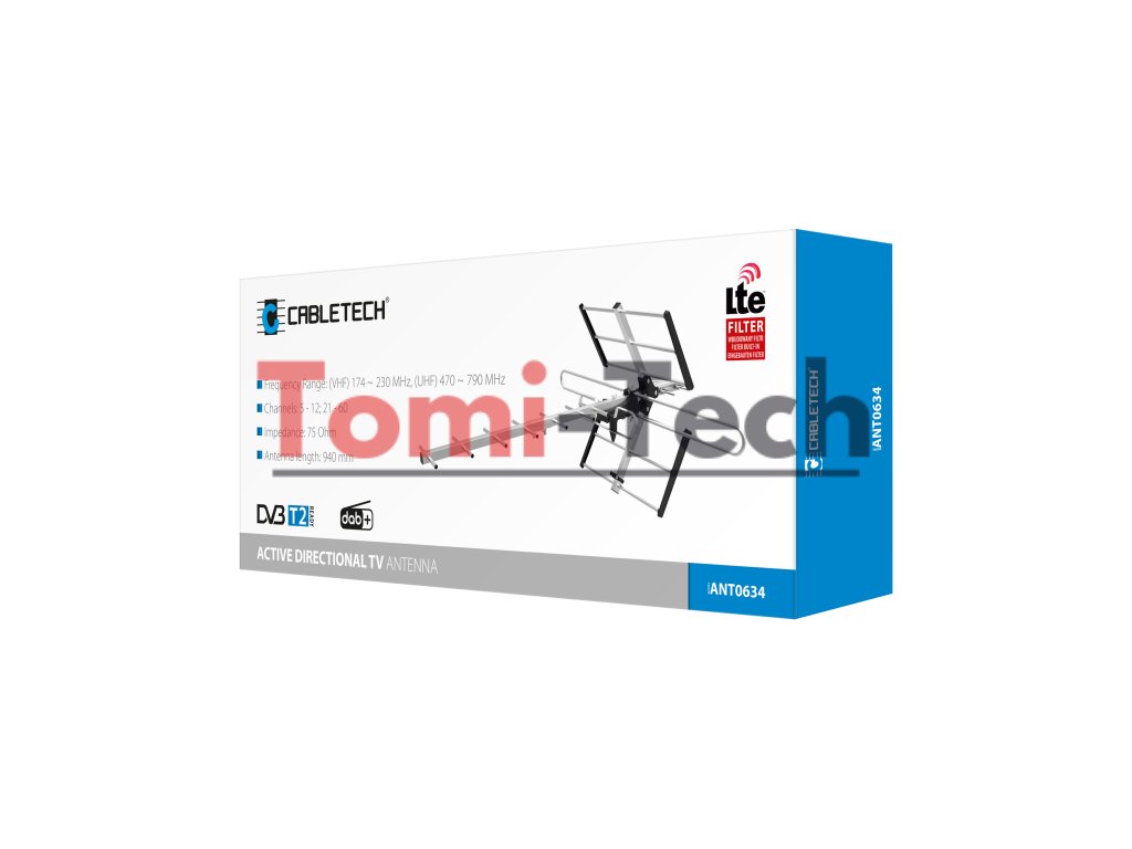 Smerová vonkajšia TV anténa typu "Yagi" od Cabletech je zariadenie, ktoré umožňuje príjem pozemného televízneho vysielania. Digitálne signály DVB-T a DVB-T2 z veľkých vzdialeností, a to aj v náročnom teréne s vysokým rušením. Anténa pracuje v pásmach VHF 174-230 MHz a UHF 470-790 MHz, čo zaručuje správny príjem vysokokvalitných signálov, takže si môžete vychutnať dokonalý obraz a zvuk svojich obľúbených seriálov alebo filmov.