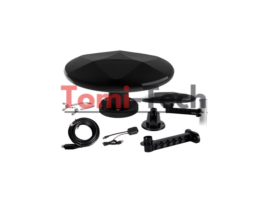 ----------Technické údaje----------Rozsah: 174 MHz - 230 MHz (VHF), 470 MHz - 698 MHz (UHF)Zisk: 35 dBÚroveň výstupného signálu (max.): 115 dBuVÚroveň šumu: <3,5 dBNapájanie: 5 V, anténaSmer: 360°Montáž: Magnetický držiak / Bočný držiak / Trvalá nožičkaFilter: LTE/4G/5GDĺžka kábla: 6 mRozmery antény: 33 cm (priemer) x 17 cm (Výška s magnetickou nožičkou)Rozmery balenia: 45 x 12,5 x 36 cmHmotnosť balenia: 2,5 kgSada obsahuje: Anténu, trvalý držiak, bočný držiak, magnet, 6 m kábel, oddeľovač napätia s napájacím káblom USB, manuál----------Vlastnosti----------Napájanie z USB alebo TV anténnej zásuvkyVeľmi dobré Príjem signálu DVB-T/T2 až do vzdialenosti 120 km od vysielača. Možnosť prijímať všetky MUXy (vrátane MUX-8). Tri možnosti montáže (magnetická základňa, bočná montáž, permanentná základňa). Vstavaný filter LTE/4G/5G. Odolné puzdro a pevná konštrukcia. UV odolný náter.Dodatočné parametre
