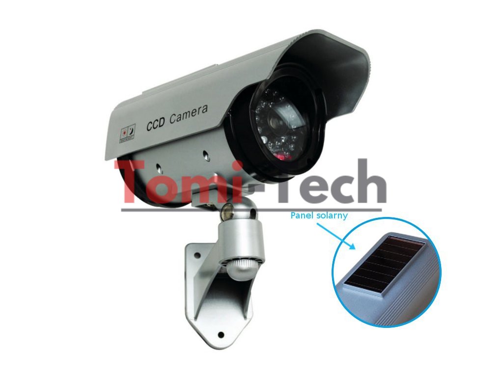 Veľmi verná kópia originálnej kamery s imitáciou IR LED diód a červenou LED diódou. Jej spracovanie sa vyznačuje vysoko kvalitnými materiálmi a dôrazom na detail. Celá kamera vyzerá tak realisticky, že ani skúsený inštalatér kamery nerozozná rozdiel medzi skutočnou kamerou a atrapou. Vďaka solárnemu panelu sa nemusíte starať o batérie, pretože ich bude panel denne nabíjať (napájané solárnym panelom alebo ďalšími AA batériami, ktoré nie sú súčasťou balenia).