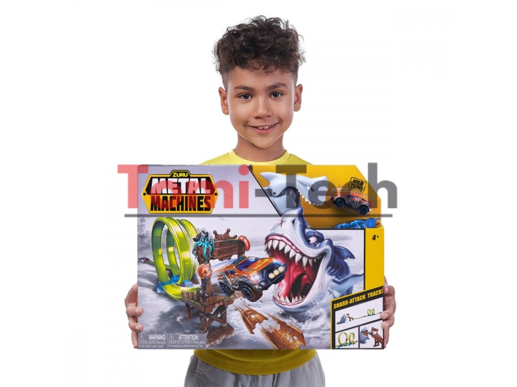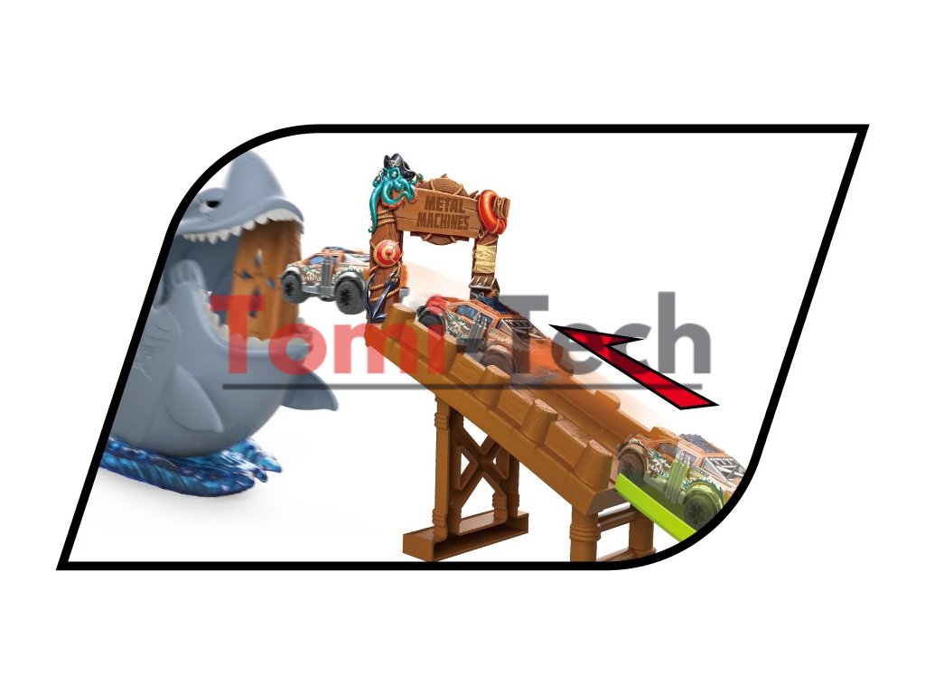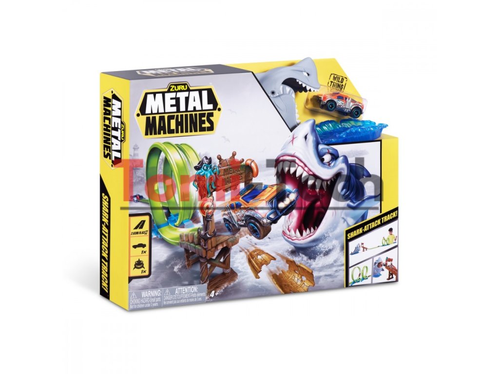 - Súprava s dráhou, autom Metal Machines ZURU a nebezpečným žralokom!