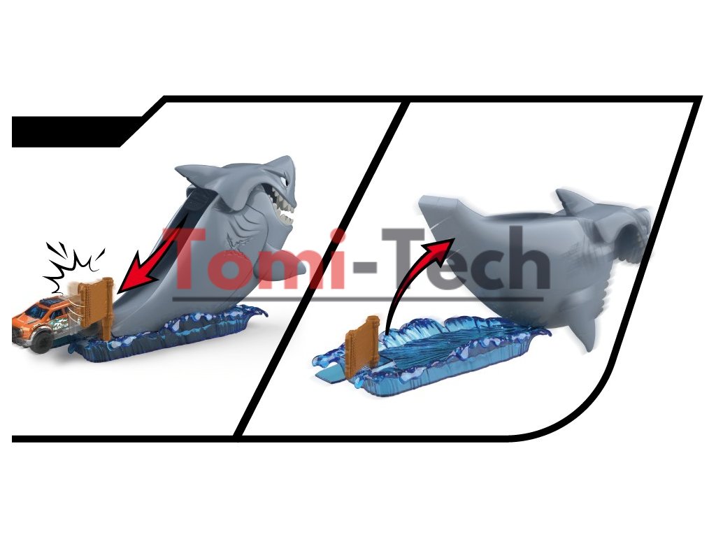- HRACIA SÚPRAVA KOVOVÝCH STROJOV SHARK: Stretnite sa s nebezpečným žralokom! Všetci malí fanúšikovia áut a kaskadérskych kúskov budú určite kričať od radosti pri pohľade na túto úžasnú autodráhu!