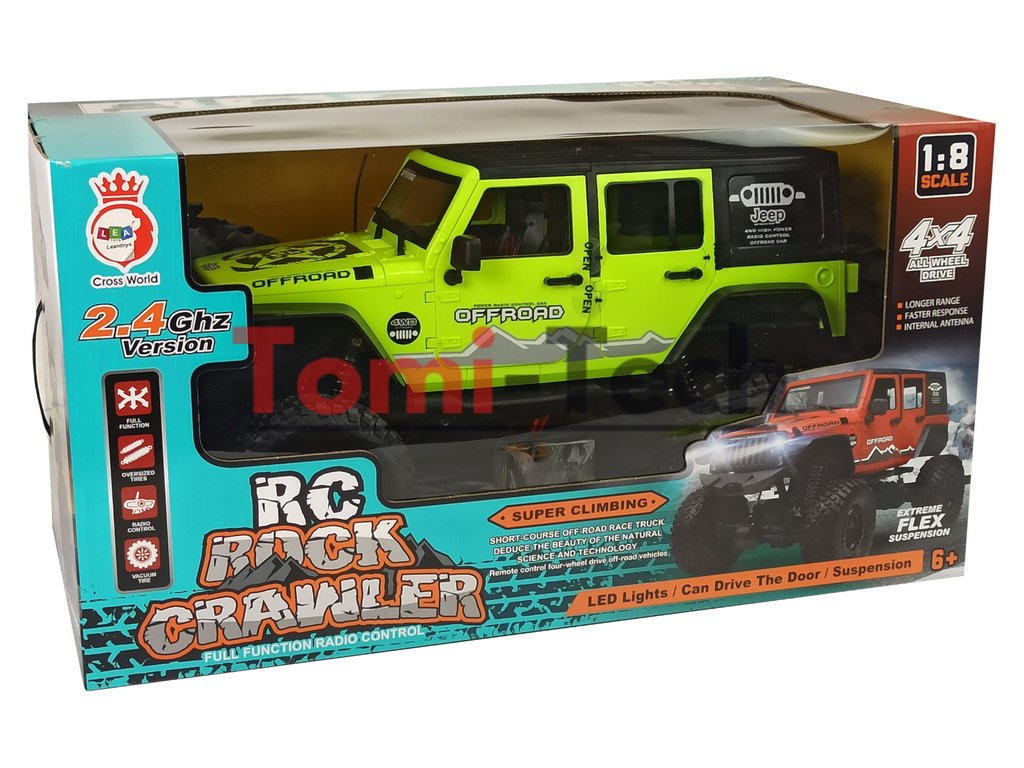 Terénne vozidlo 4x4 so zelenými tlmičmi nárazov Rock Crawler 2,4 GHz