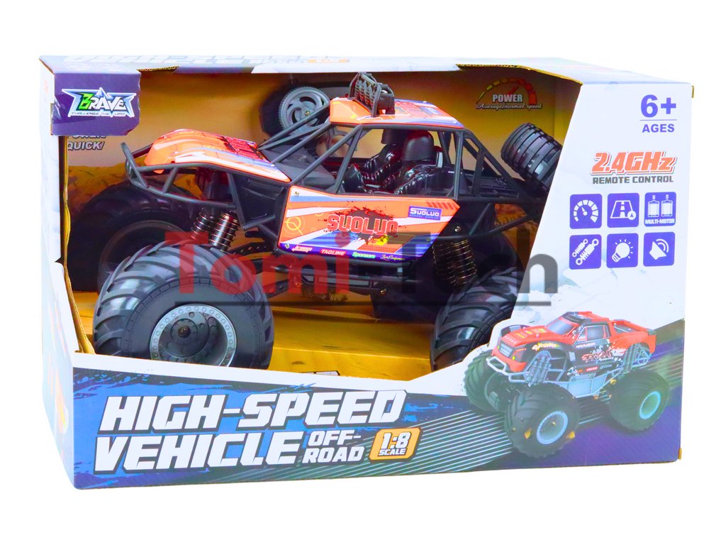Toto diaľkovo ovládané terénne vozidlo v mierke 1:8 je skutočnou lahôdkou pre mladých dobrodruhov. Tieto nebojácne vozidlá, nalakované v intenzívnej oranžovej farbe, pútajú pozornosť na prvý pohľad. Vybavené obrovskými, odolnými gumenými kolesami a pokročilými tlmičmi nárazov, sú pripravené zvládnuť aj ten najťažší terén.