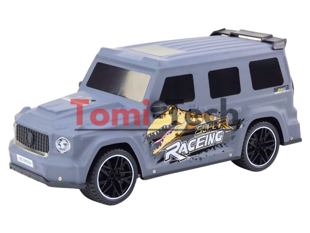 RC auto na diaľkové ovládanie s dinosaurom v sivej mierke 1:10