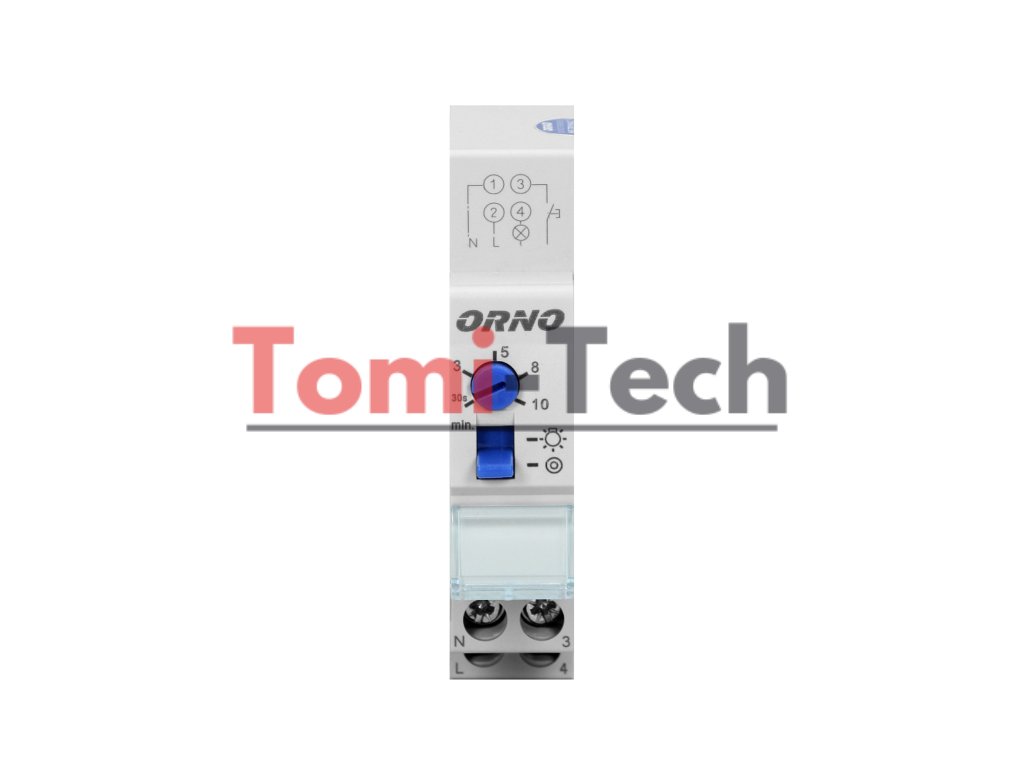 Časovač schodiska určený na montáž na štandardnú DIN lištu TH-35 mm. Používa sa na udržiavanie osvetlenia na chodbách, schodiskách, v priechodoch kancelárskych budov, hotelov alebo iných zariadení po stanovenú dobu, po ktorej sa osvetlenie automaticky vypne. Nastaviteľný čas svietenia: min. 30 sekúnd, max. 10 minút. Nepretržitá alebo dočasná prevádzka. 3- alebo 4-vodičová inštalácia. Kompatibilný s LED osvetlením.Dodatočné parametre